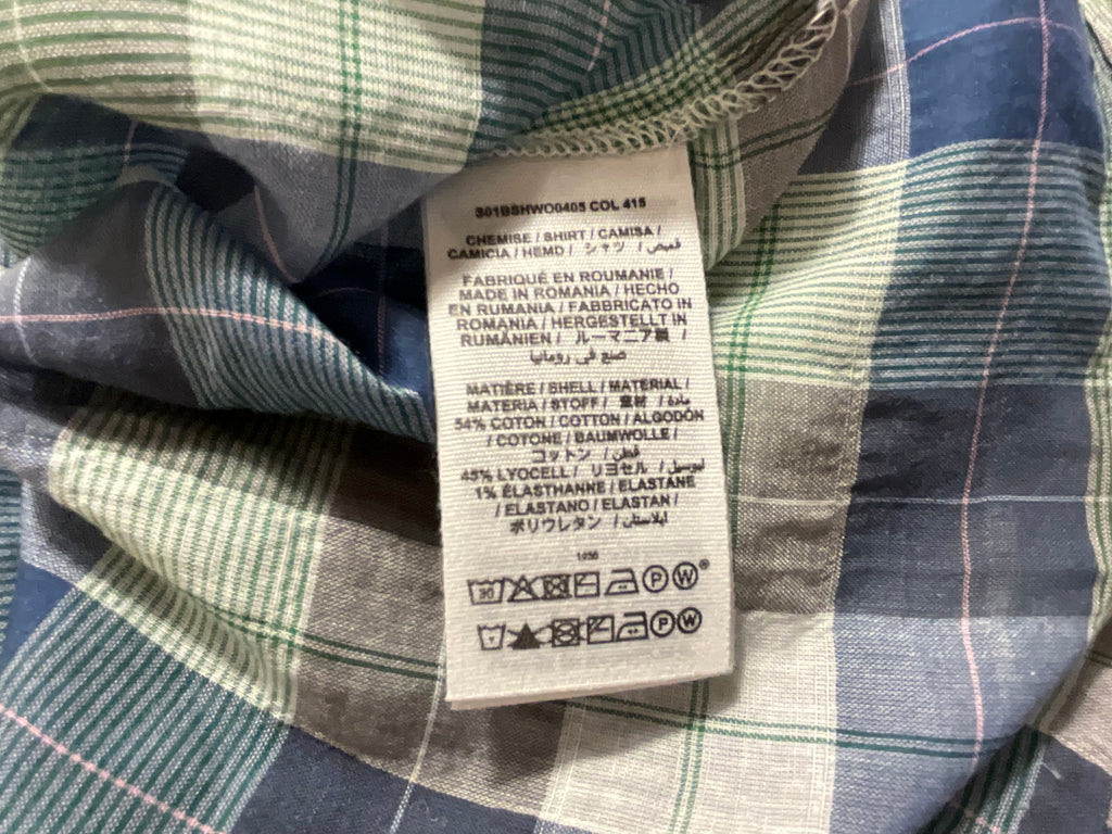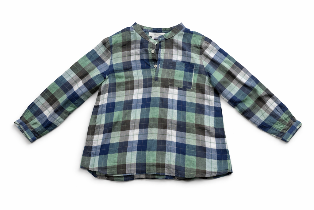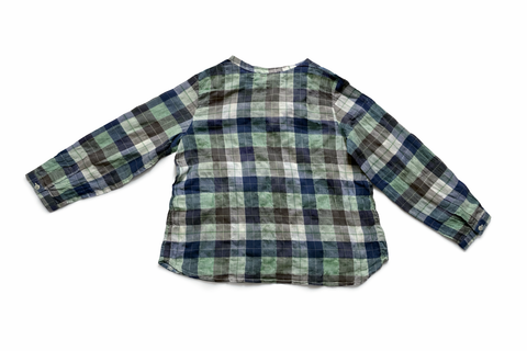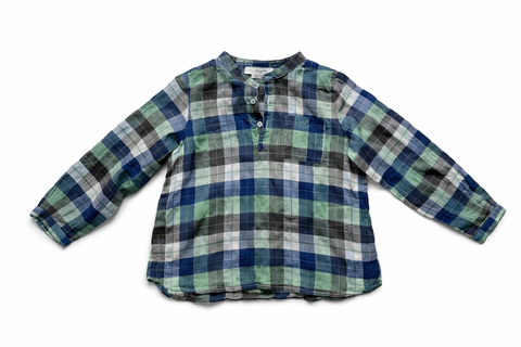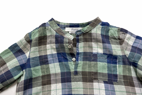 BONPOINT BOYS COLLARLESS COTTON CHECK SHIRT SIZE 4 YEARS CHILDREN