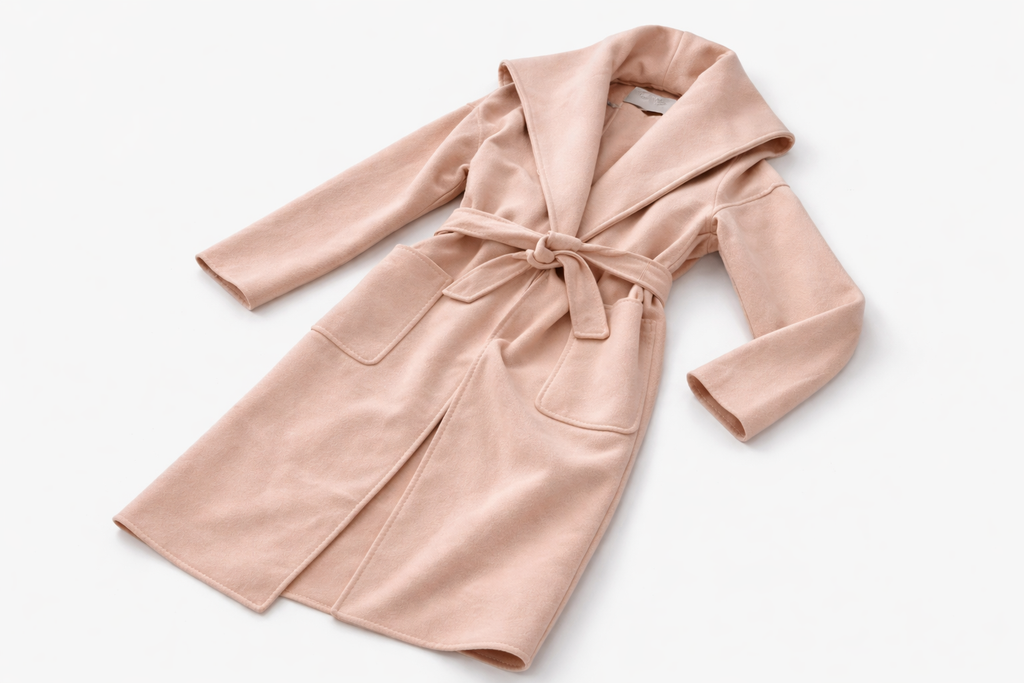 Cashmere Wrap Dress Styled Hooded MAX MARA Coat. Two Pockets at sides.Matching Colour Belt at waist.