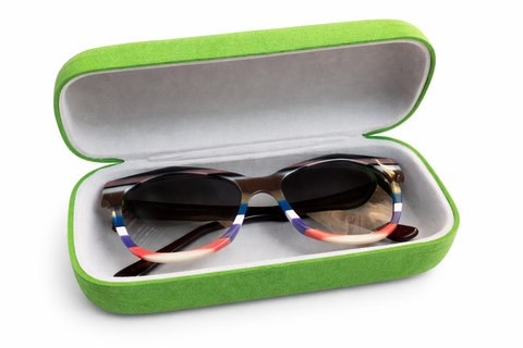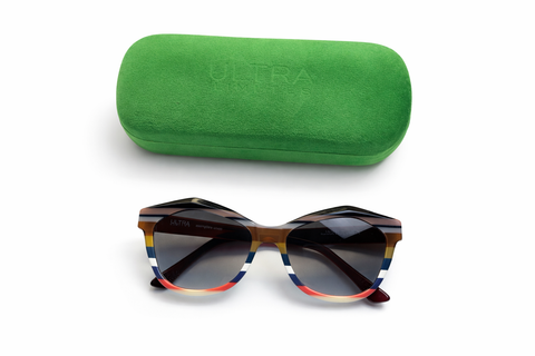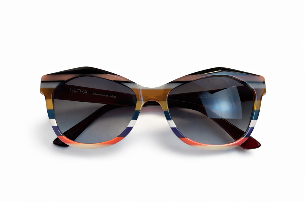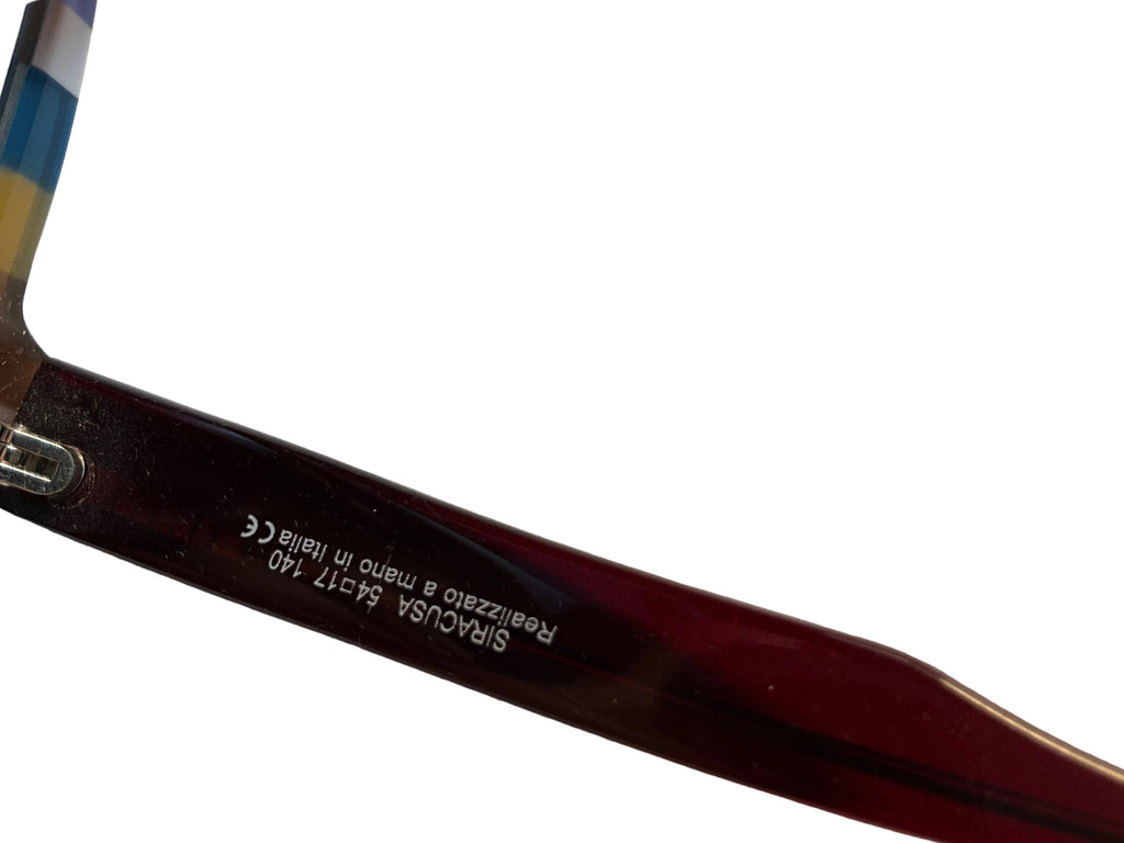 Handmade in Italy by combining the know-how of the craftsmen from the Italian artisans/ Assembly of 12 layers of cellulose acetate worked on for more than 41 days in the various phases: selection, gluing, curing, pressing, heating, cutting, riveting, finishing and polishing.