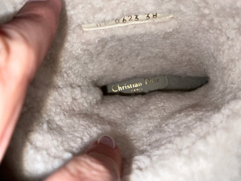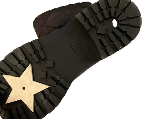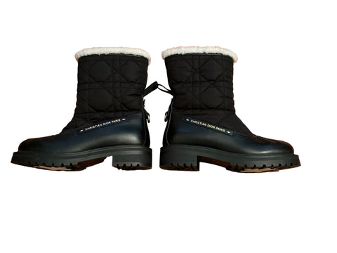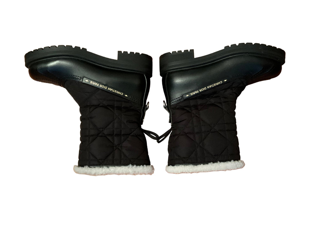 Christian Dior Frozen-D Ankle Boot Black Calfskin Cannage Quilted Nylon and White Shearling Size 38