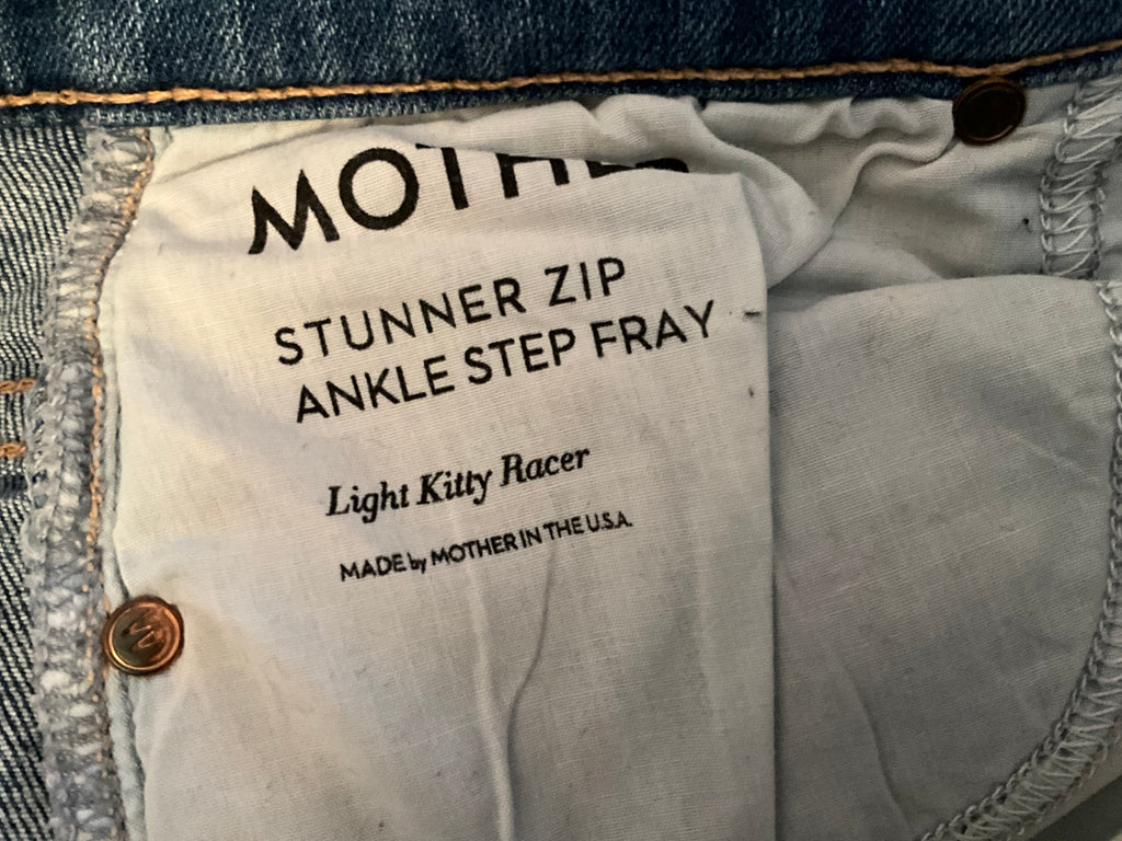 MOTHER The Stunner Zip Ankle Step Fray In Light Kitty Racer Jeans size 26 ladies