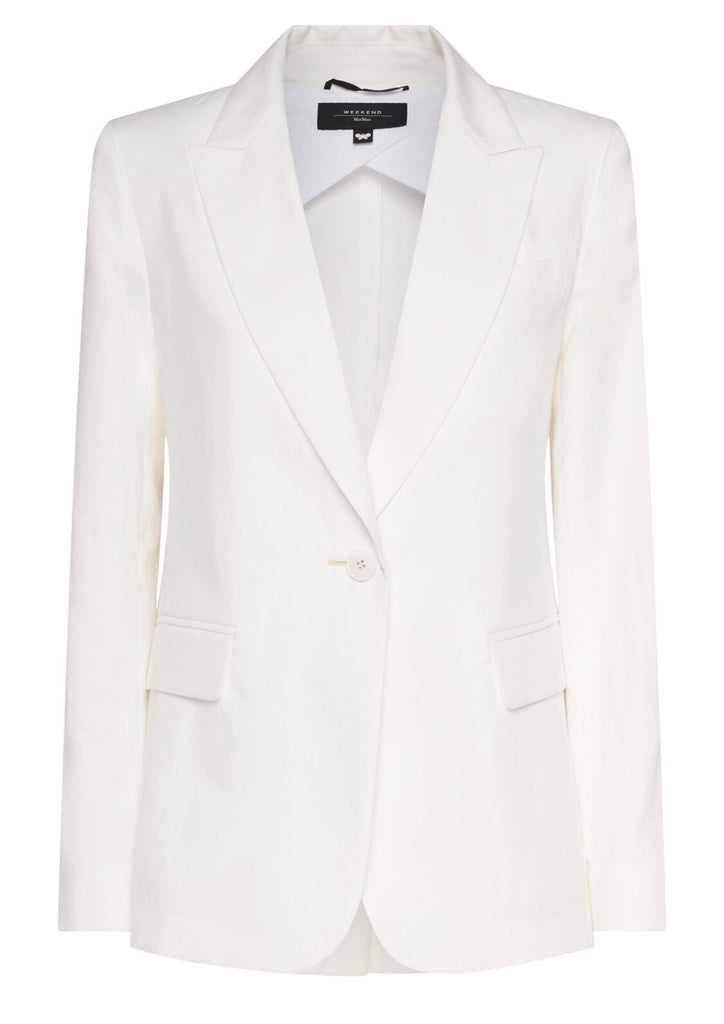 WEEKEND MAX MARA WHITE LINEN PANTSUIT SUIT SIZE I42 UK 10 US 8 LADIES