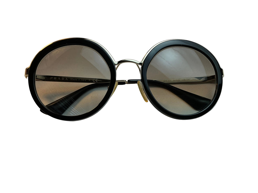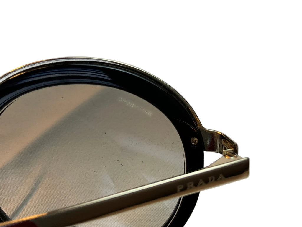 Prada Round Black Gold Oversized SPR50T 1AB-0A7 54-23-140 Sunglasses ladies