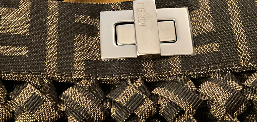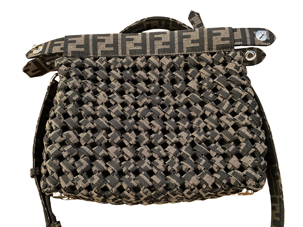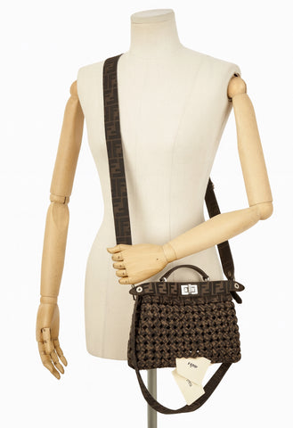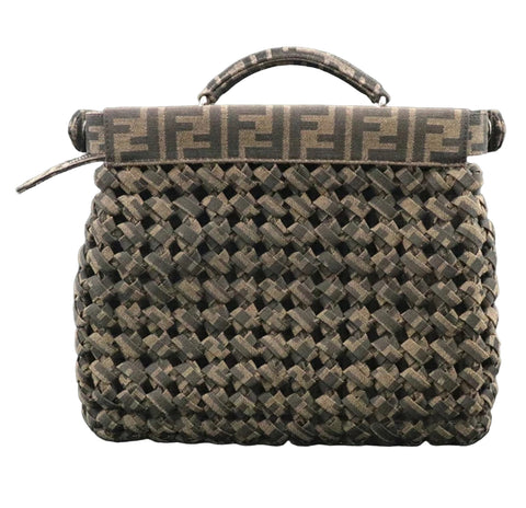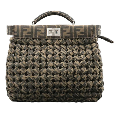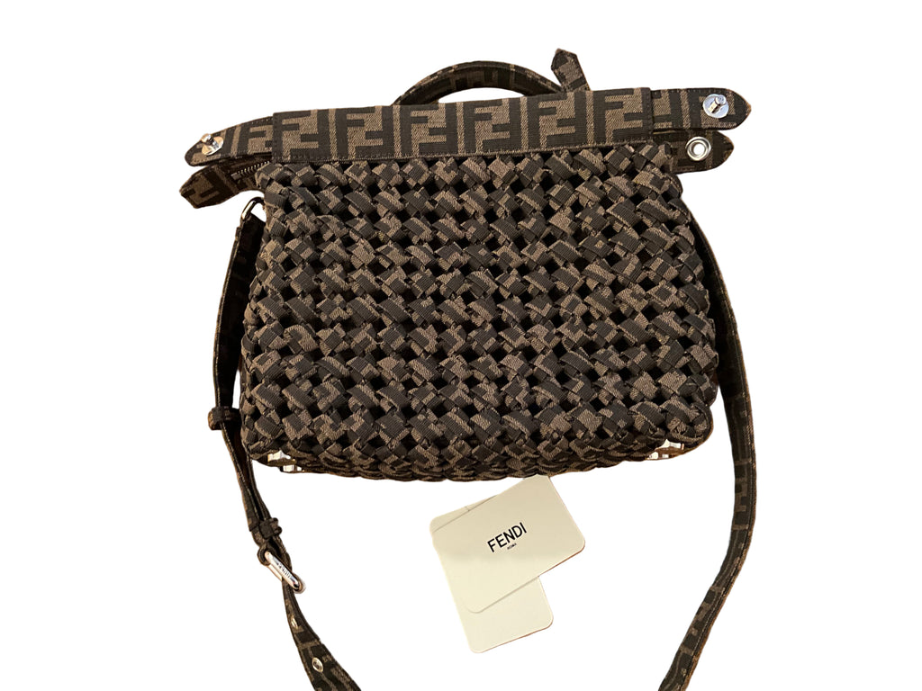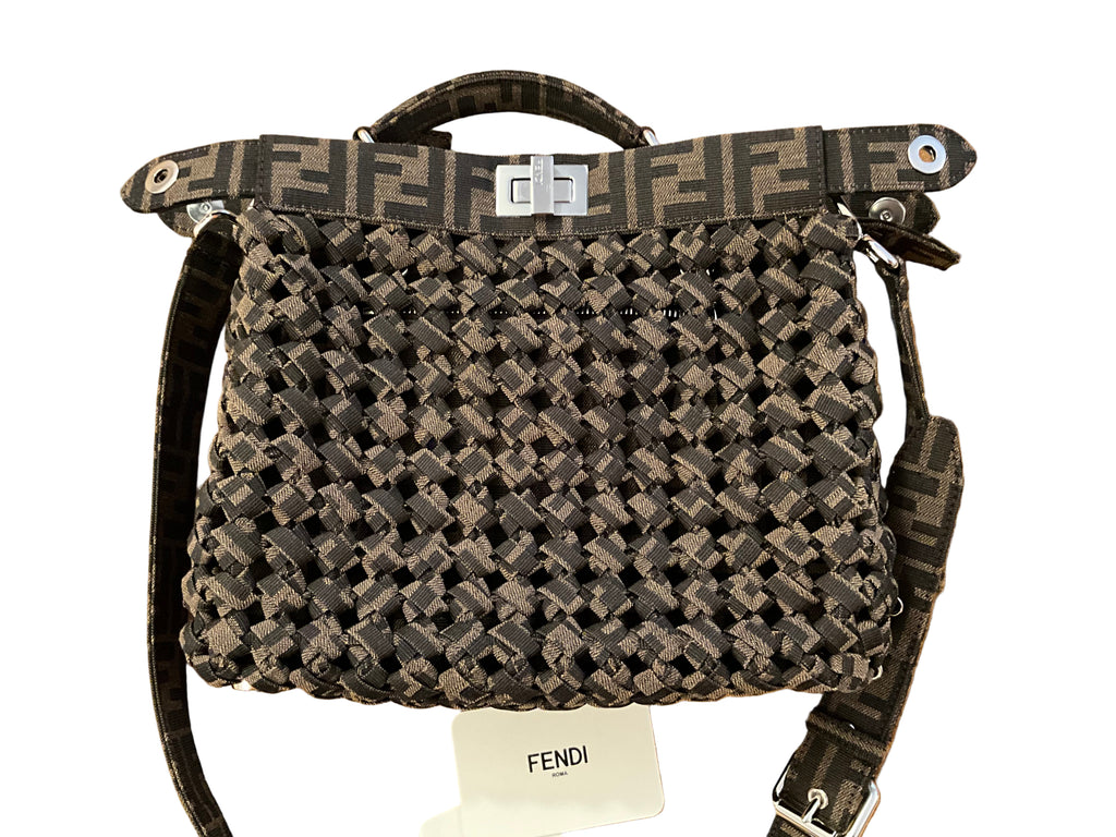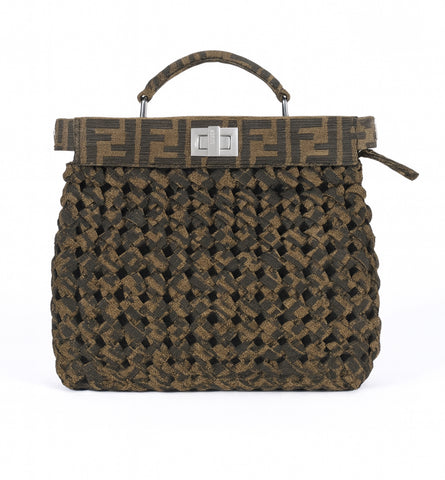 Fendi Fabric Jacquard FF 1974 Woven Knotted Peekaboo Iconic Satchel Tobacco Moro Medium Bag Handbag ladies