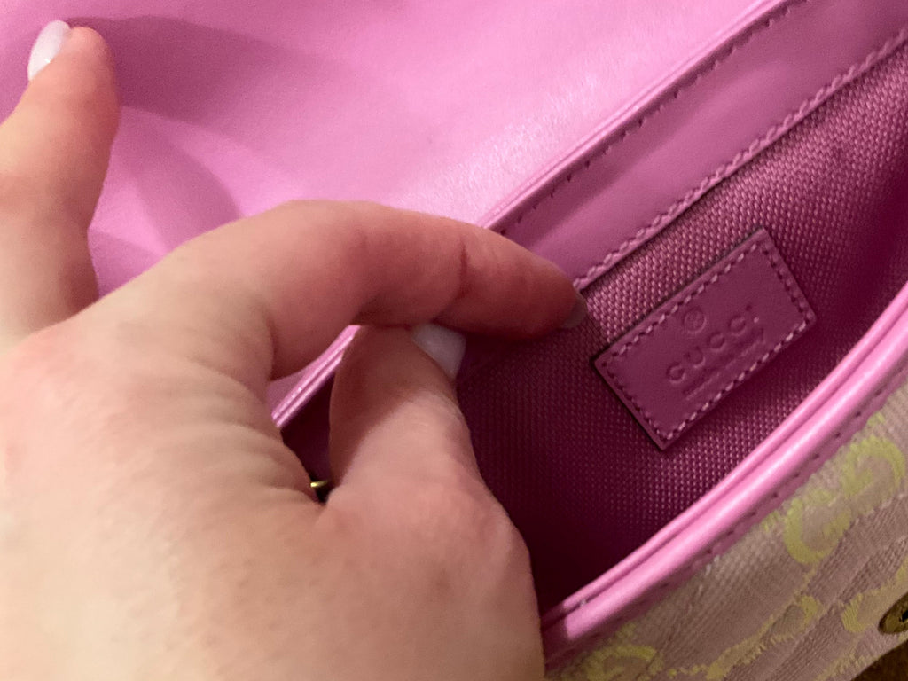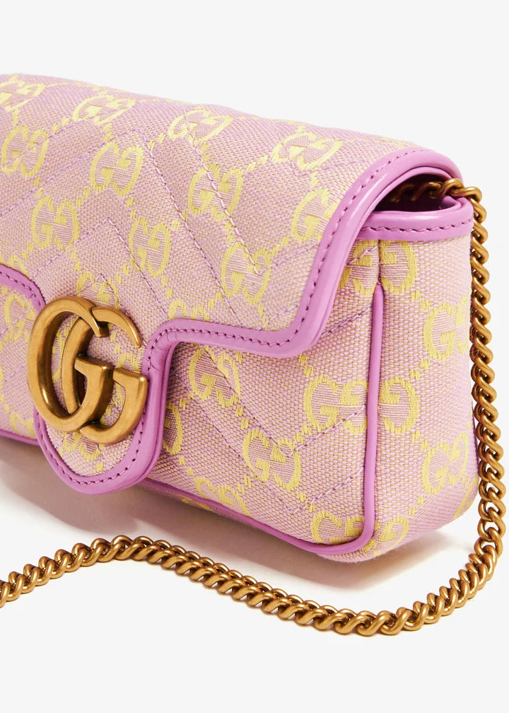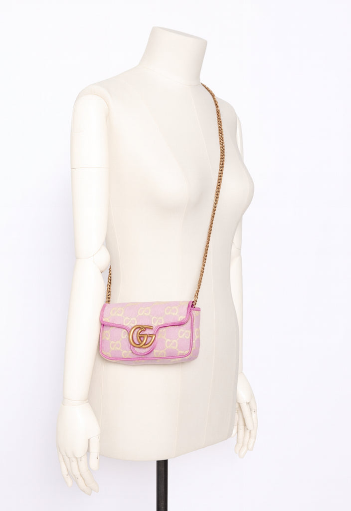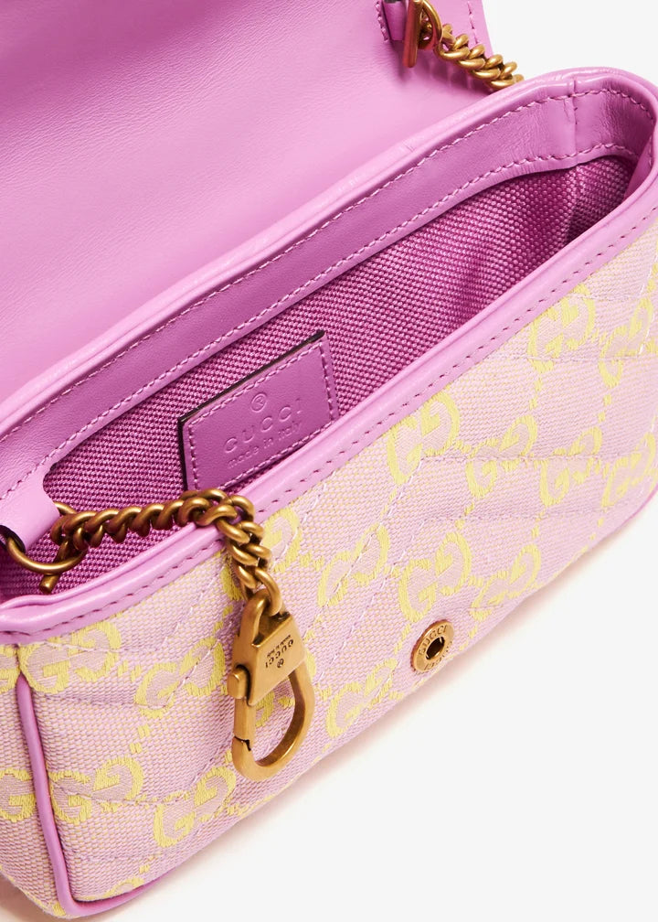 Gucci Super Mini GG Marmont Matelasse Canvas Flap crossbody bag handbag pink ladie