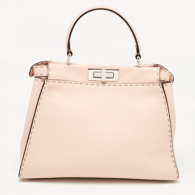 Fendi Pink Selleria Leather Mini Peekaboo Top Handle Bag Handbag ladies