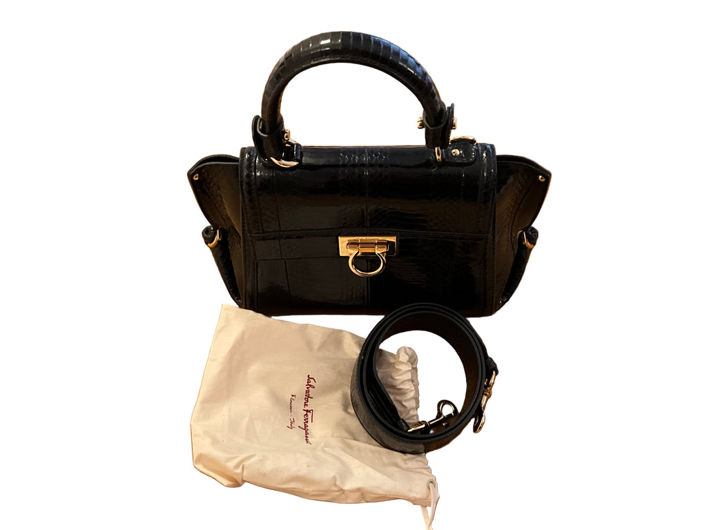 Salvatore Ferragamo Small Sofia bag in python, Black
