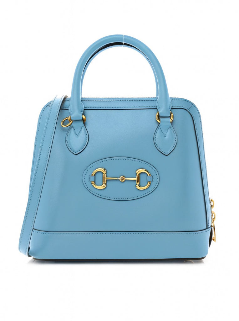 GUCCI Boarded Plutone Calfskin Small Horsebit 1955 Top Handle Bag in Blue Ladies