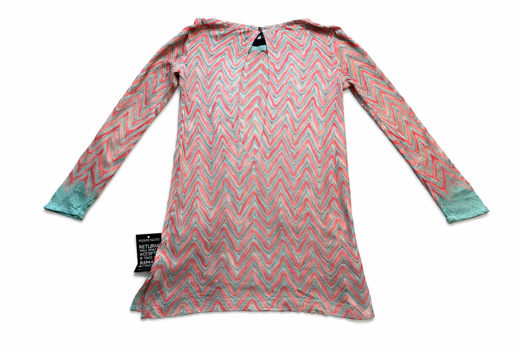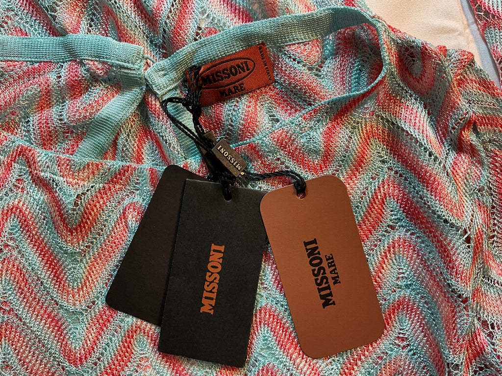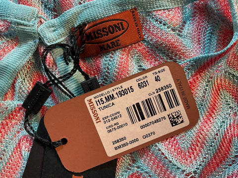 Missoni Mare Pink Turquoise Zig Zag crochet knit tunic Size I 40 UK 8 US 4