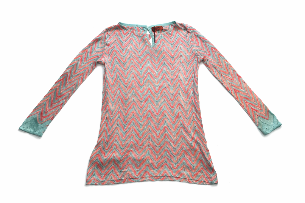 Missoni Mare Pink Turquoise Zig Zag crochet knit tunic Size I 40 UK 8 US 4 ladies