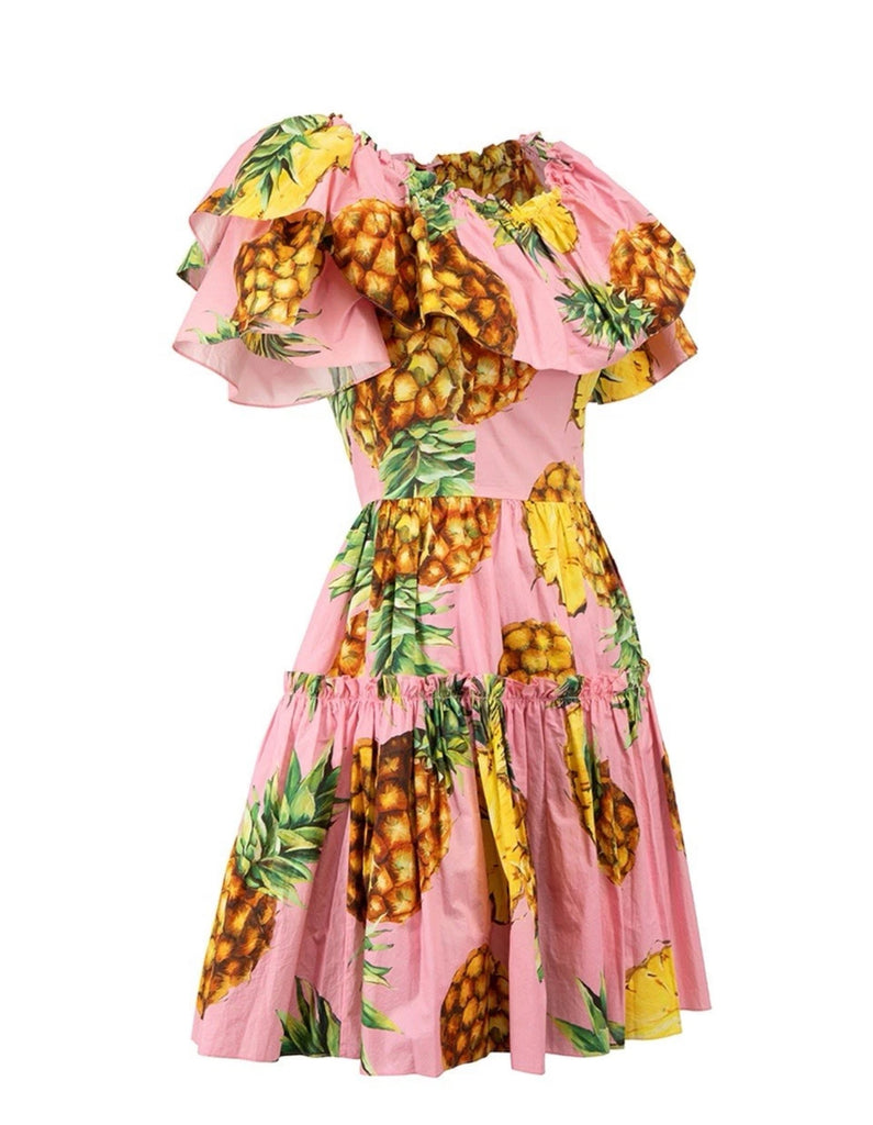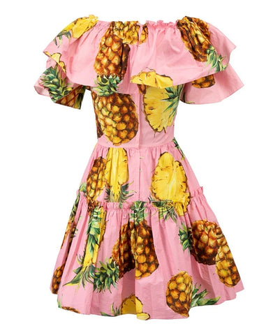 Dolce& Gabbana Pink Pineapple Print Bardot Mini Dress Size I 40 UK 8 US 4 S small