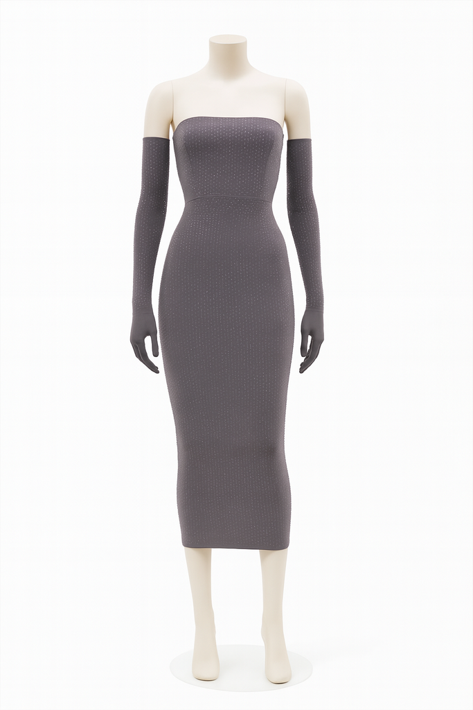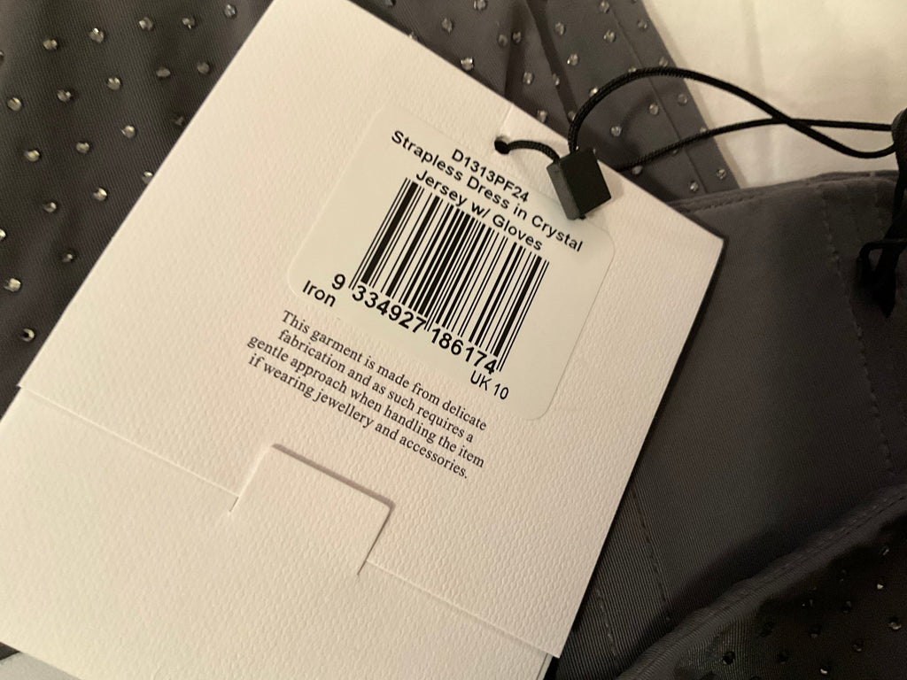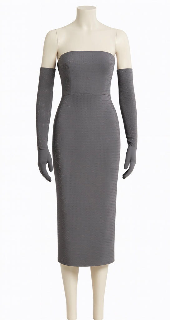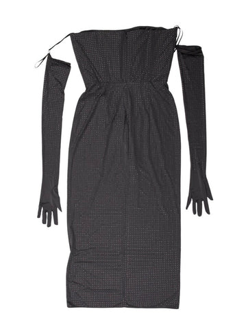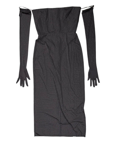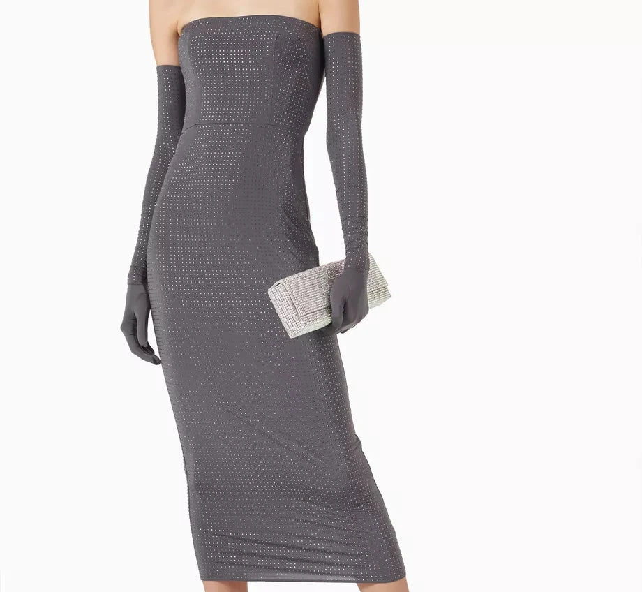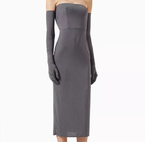 Alex Perry Strapless Midi Dress in Crystal Jersey with gloves Size UK 10 ladies