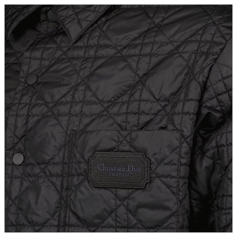 Dior Cannage Quilted Jacket in navy blue. From the Runaway Collection.Camp Collar. Tonal all-over quilted Cannage motif.Christian Dior Couture embroidery.Dior-engraved metal snaps closure at front.Patch pocket on chest. Snap side slits