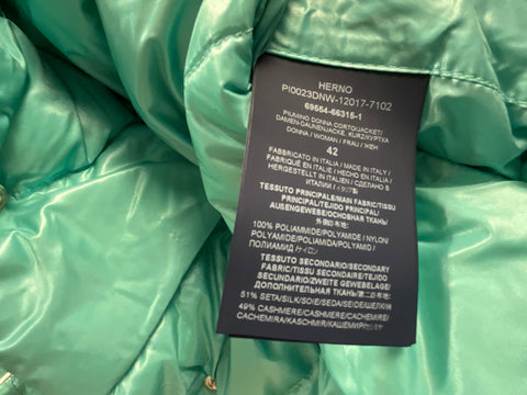 Herno Cashmere Trim Green Puffer Jacket size I 42 UK 10 US 6 ladies