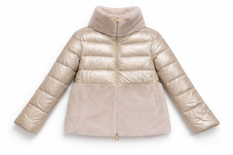 Fabric:Lining: Polyamide 100%, Goose Down 90%, Goose Feather 10%Outer: Polyamide 100%, Polyester 100%