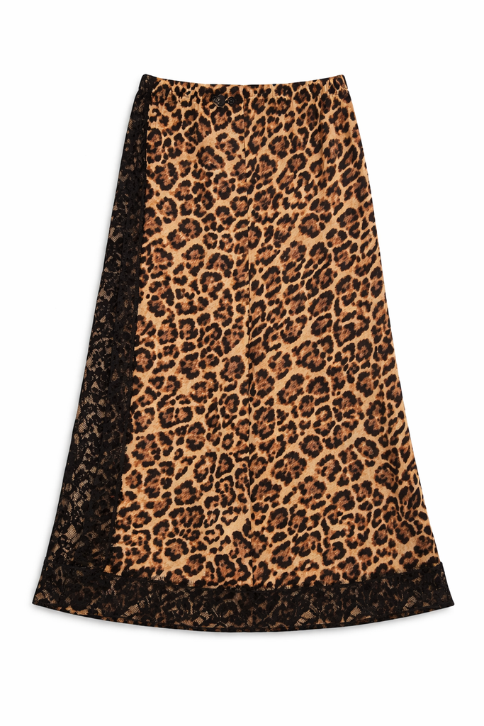 Design and Specification: elastic waist, lace trim, ankle length, animal print