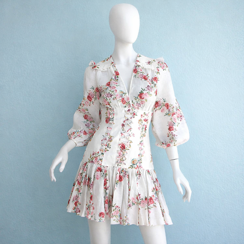 ZIMMERMANN HONOUR CORSET MINI DRESS FLORAL PRINT LINEN Size 2 ladies