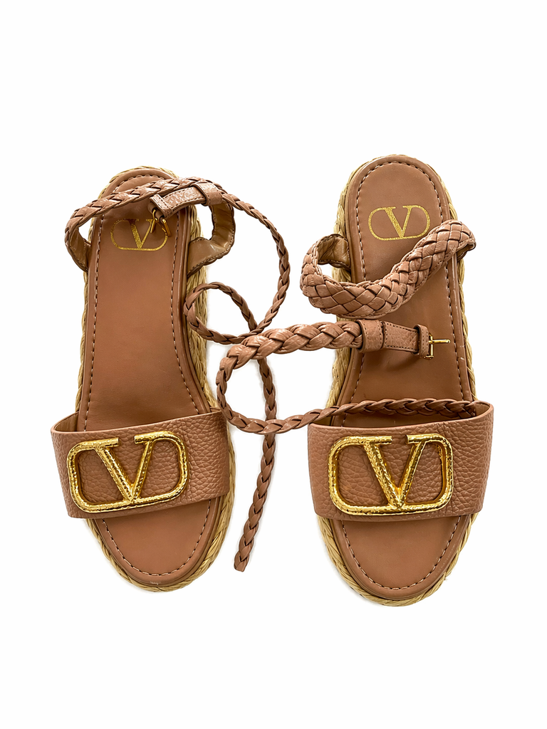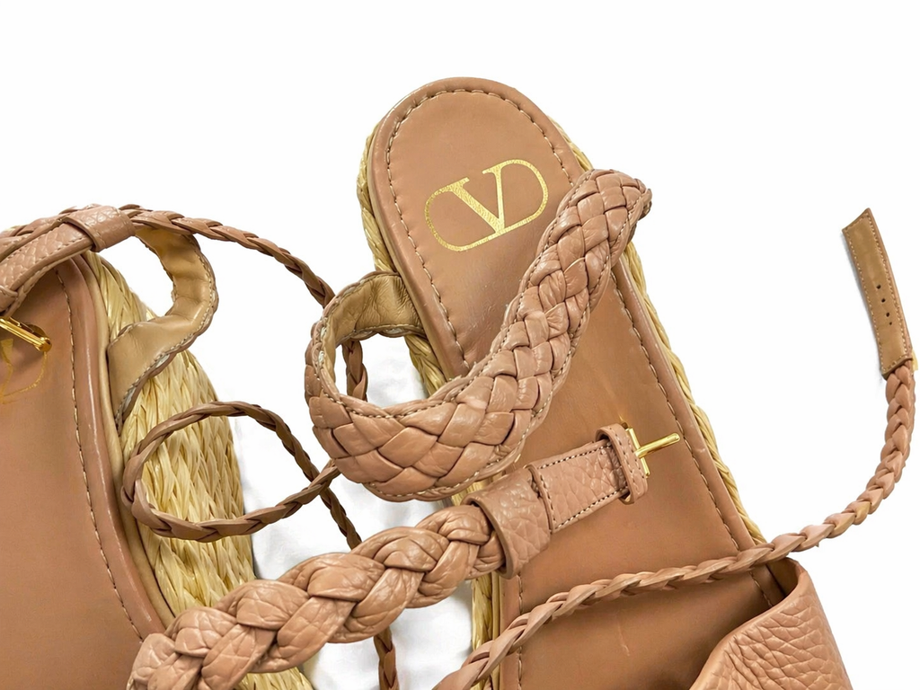 Valentino Garavani Women's Vlogo Wedge Platform Espadrille Sandals Size 38
