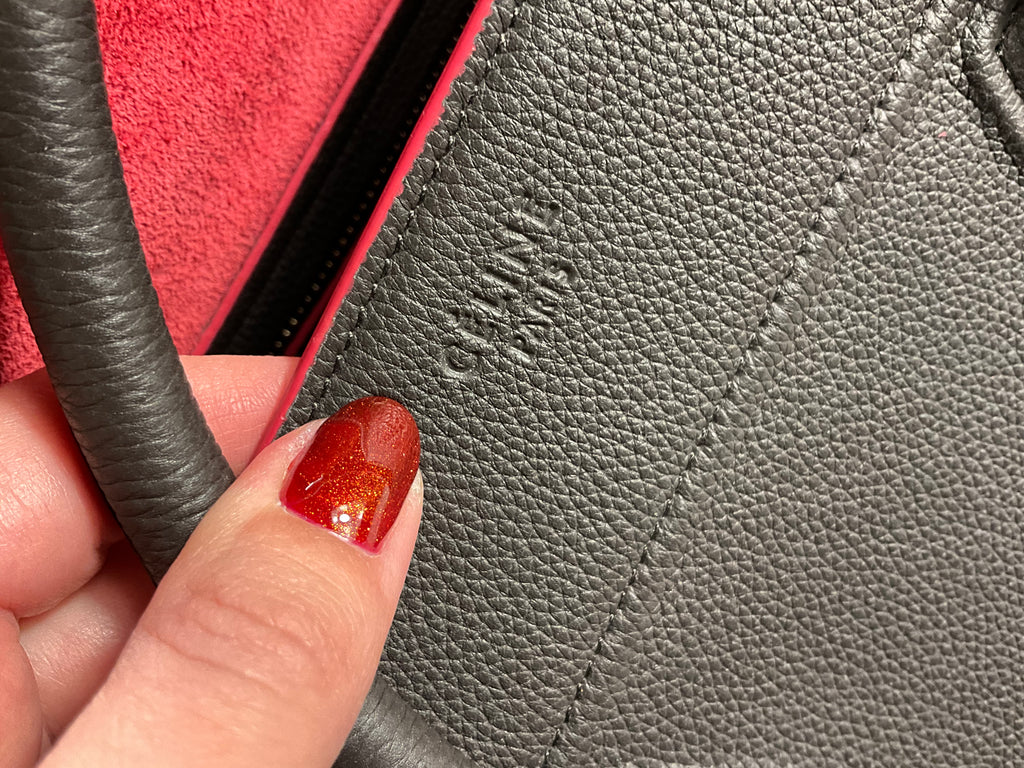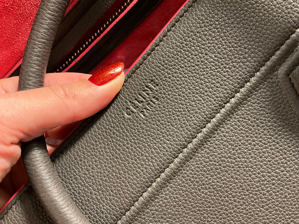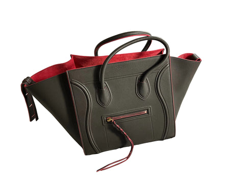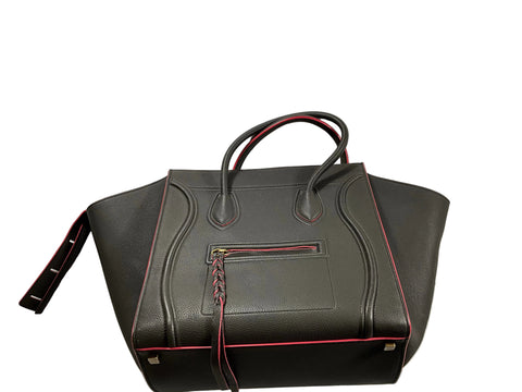 CELINE Dark Grey/Pink Leather Medium Phantom Luggage Tote Bag