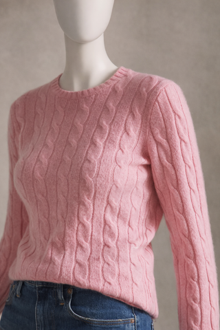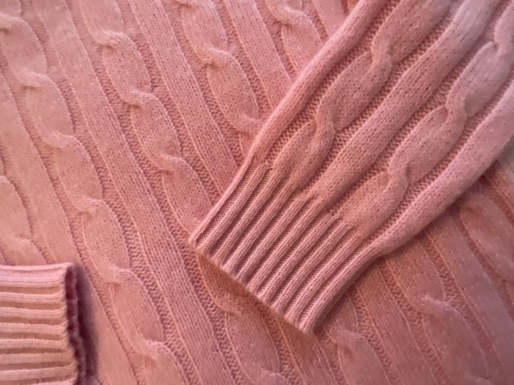 RALPH LAUREN SUGAR MOUSE PINK CASHMERE CREW NECK CABLE KNIT JUMPER Size M medium