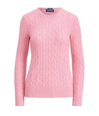 RALPH LAUREN SUGAR MOUSE PINK CASHMERE CREW NECK CABLE KNIT JUMPER Size M medium ladies