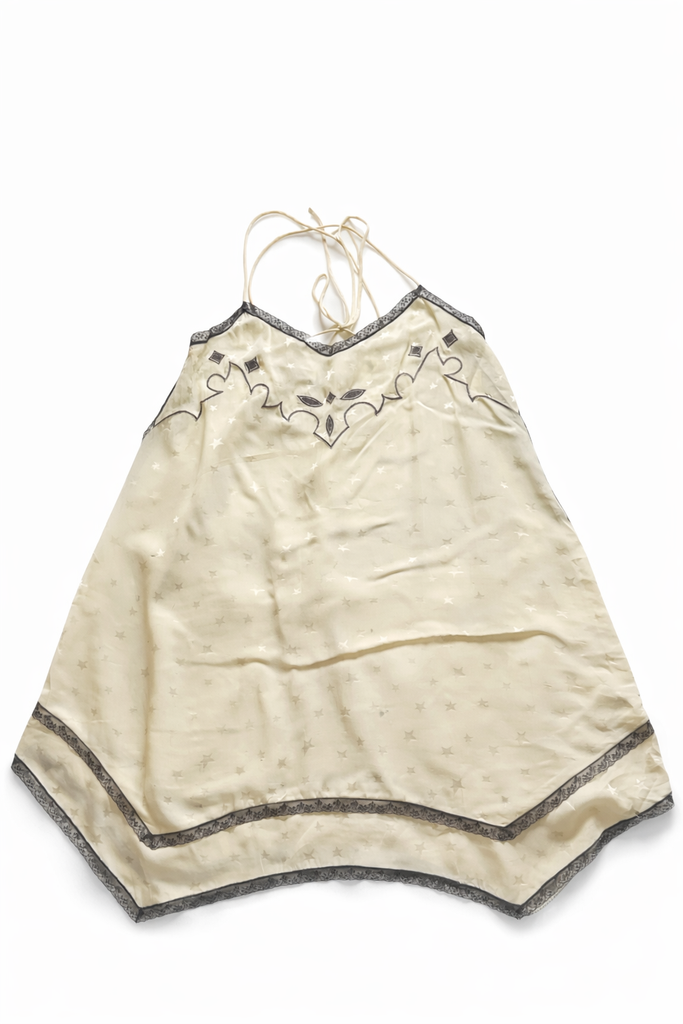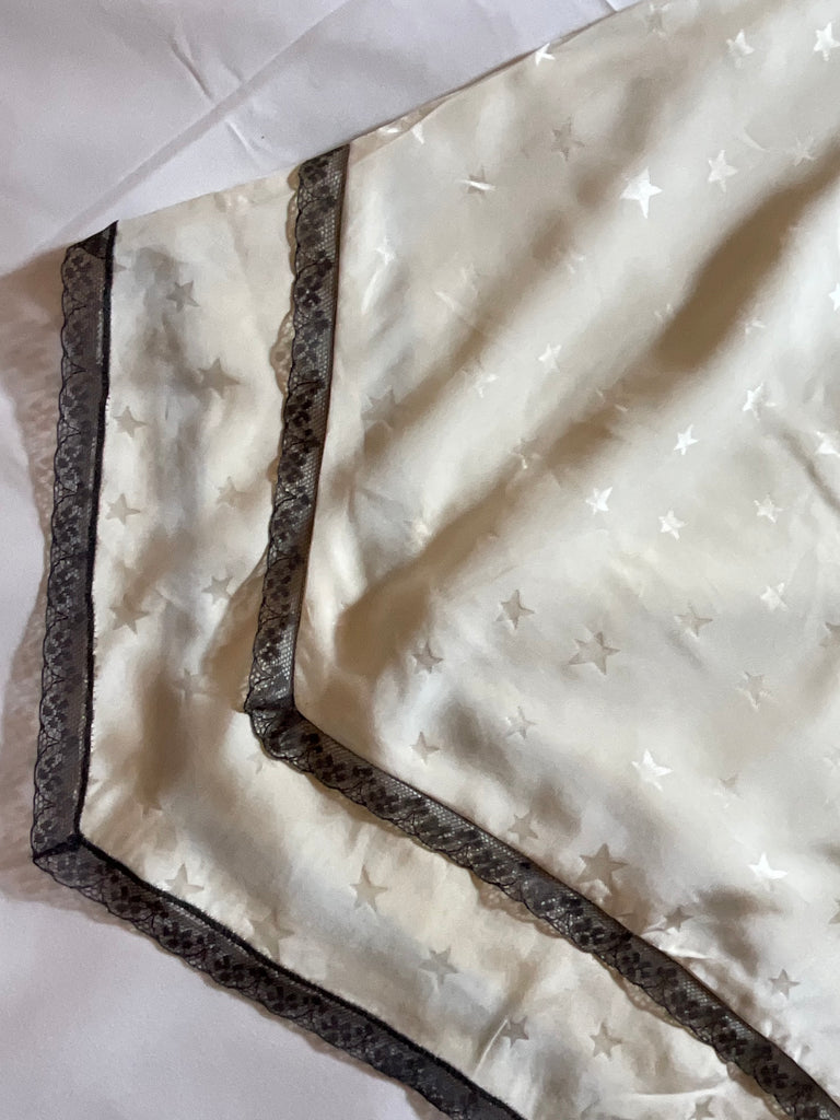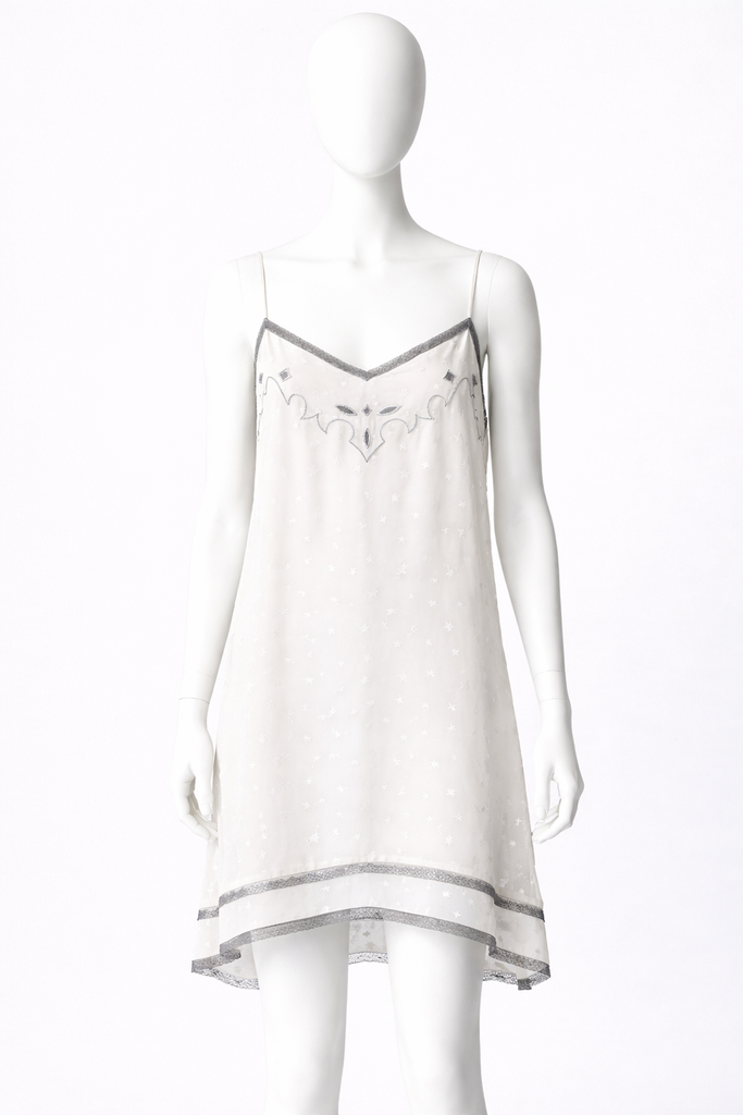 Beautiful dress from Zadig & Voltaire Rema Jac Deluxe silk embroidered dress, spaghetti straps, black lace trim,embroidered at chest, stars fabric.
