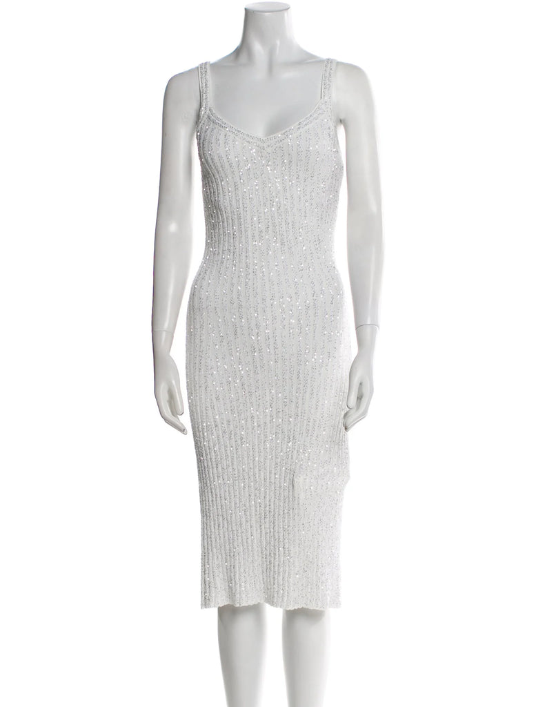 Missoni white Sequin-embellished ribbed-knit midi dress Size I 42 UK 10 US 6 ladies